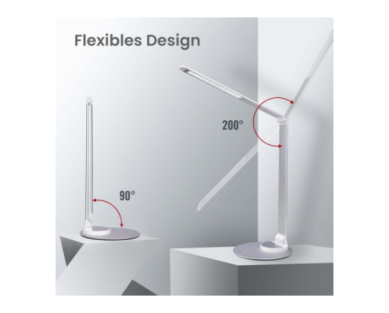 TaoTronics TT-DL22 LED namizna svetilka združuje sodobno obliko in vrhunsko funkcionalnost, kar omogoča optimalno osvetlitev za delo, branje ali sprostitev. Njena prilagodljiva glava in roka omogočata enostavno nastavitev kota svetlobe, kar zagotavlja, da svetloba vedno pade tja, kjer jo najbolj potrebujete. Z izbiro med petimi barvnimi temperaturami in šestimi stopnjami svetlosti, lahko ustvarite popolno vzdušje za vsak trenutek dneva. Vgrajena USB vrata omogočajo enostavno polnjenje naprav, medtem ko njena varčna LED tehnologija zagotavlja dolgo življenjsko dobo in nizko porabo energije. TaoTronics TT-DL22 je zanesljiva in elegantna rešitev za vse vaše potrebe po osvetlitvi.
