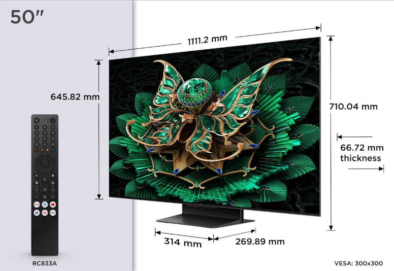 TCL 4K QD-Mini LED HDR PREMIUM 50C71K, Google TV, 144Hz, Dolby Atmos