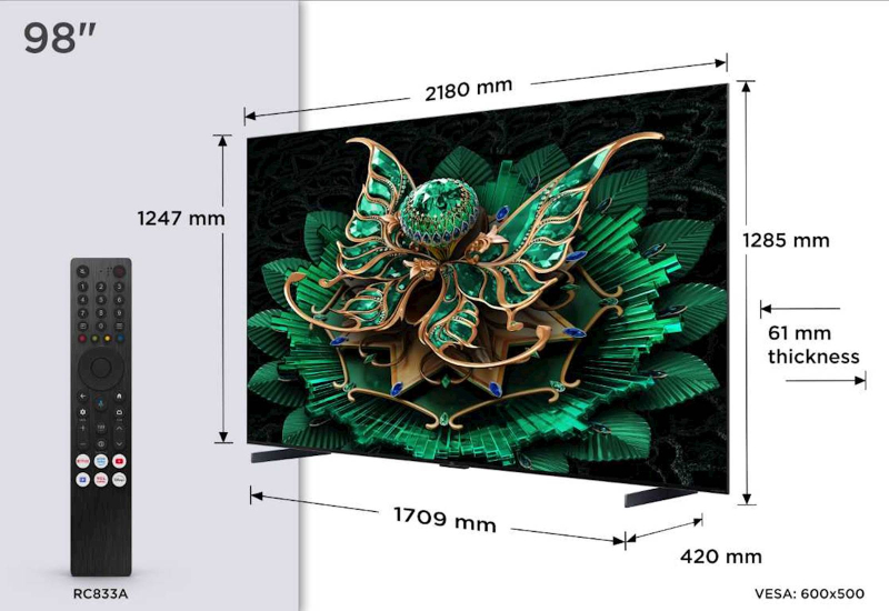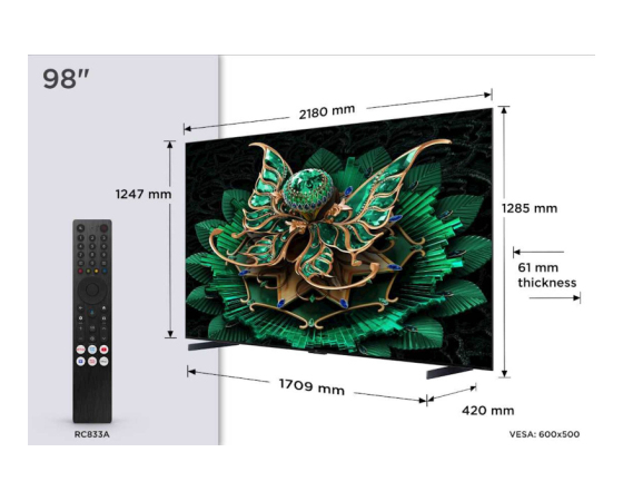 TCL 4K QD-Mini LED HDR PREMIUM 98C71K, Google TV, 144Hz, Ozvočeno z Bang & Olufsen