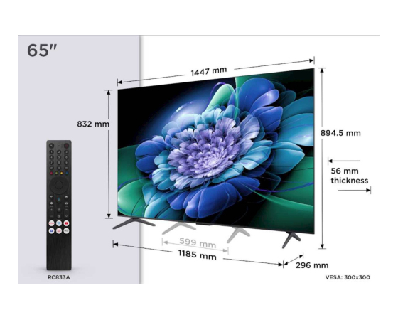 TCL 4K QD-Mini LED TV 65C69K, Google TV, 144Hz, Onkyo zvok z Dolby Atmos