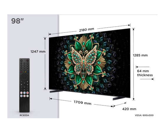 TCL 4K QD-Mini LED TV 98C61K, Google TV, 144Hz, Onkyo zvok z Dolby Atmos