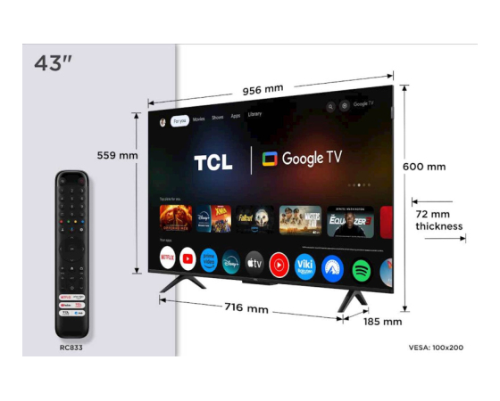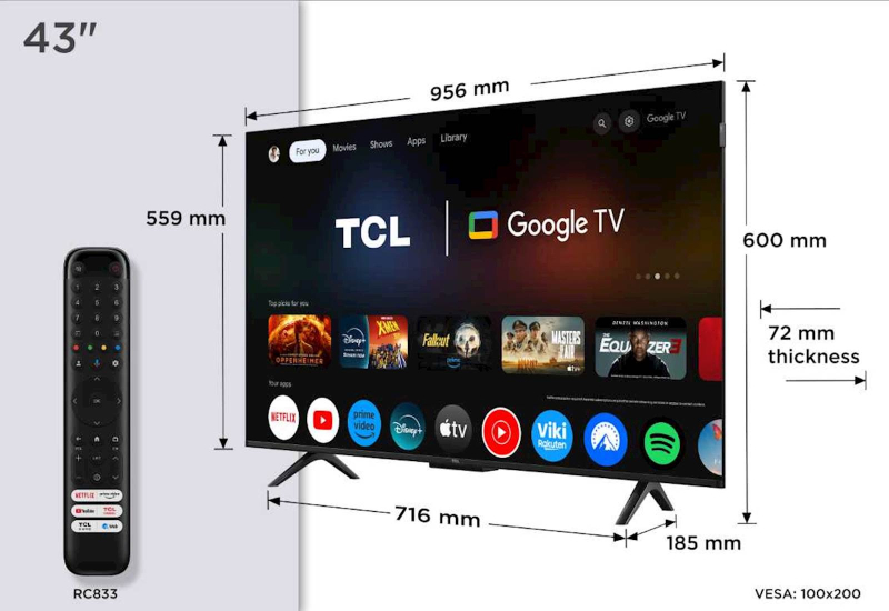 TCL 4K QLED TV 43P79K, Google TV,Dolby Vision & Atmos