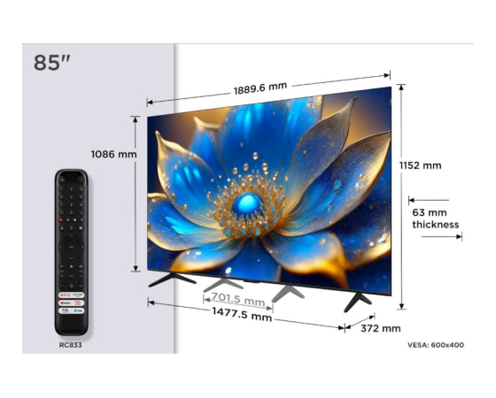 TCL 4K QLED TV 85P71K, Google TV,Onkyo zvok z Dolby Atmos
