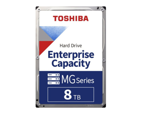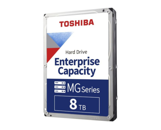 Toshiba MG08ADA800E iz serije MG08‑D je enterprise disk kapacitete 8 TB, namenjen za podatkovne centre in strežniška okolja. Uporablja SATA 6 Gb/s vmesnik, vrti se pri 7200 RPM in ima 256 MB predpomnilnika. Disk podpira neprekinjeno 24/7 delovanje z delovno obremenitvijo do 550 TB/leto in MTBF 2 milijona ur. Oblikovan je v standardnem 3,5-palčnem formatu z 26,1 mm višine, zagotavlja dosledno in zanesljivo zmogljivost v poslovnih sistemih.