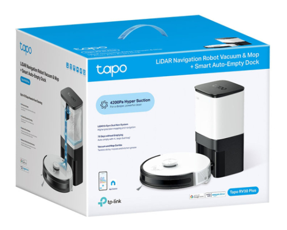TP-LINK TAPO RV30 PLUS s krpo in samopraznjenjem robotski baterijski sesalnik