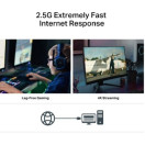 Izjemna hitrost - 2,5-gigabitni Ethernet odklene najvišjo zmogljivost vaše pasovne širine in naprav Multi-Gig. Ne glede na to, ali gre za lokalni prenos podatkov ali dostop do interneta, je TX201 kos tej nalogi.