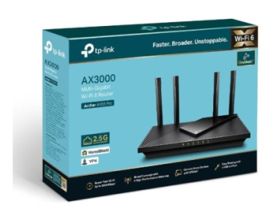 Podprt TP-Link OneMesh: Prilagodljivo ustvarite Wi-Fi celotnega doma z Archer AX55 Pro z dodajanjem OneMesh podprtega razširjevalnika dosega.