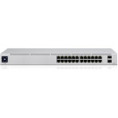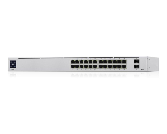 USW-24-POE je nastavljivo stikalo Gigabit Layer 2 s štiriindvajsetimi gigabitnimi Ethernet vrati, vključno s šestnajstimi samodejno zaznavnimi vrati 802.3at PoE + in dvema SFP priključkoma.