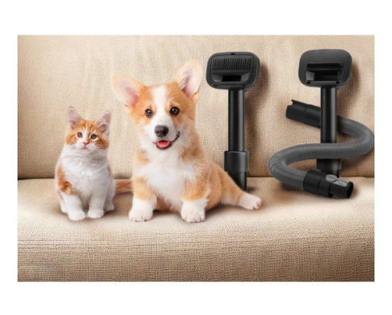 Komplet dodatkov Teddy Pet je inovativno orodje, zasnovano za nego hišnih ljubljenčkov. Ponuja 2-v-1 dizajn z dvema zamenljivima glavama krtače: eno za nego in drugo za razčesavanje. Vključuje raztegljivo vakuumsko cev, ki se lahko podaljša do 1,2 metra.