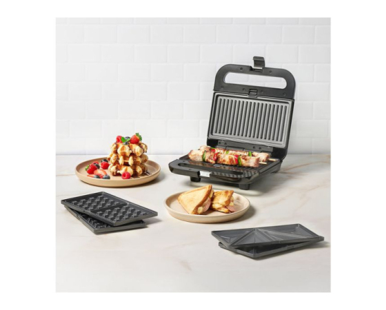Odkrijte vsestranskost v svoji kuhinji z Ufesa Robson 3-v-1 opekačem. Zamenljive plošče omogočajo hitro preklapljanje med pripravo hrustljavih sendvičev, slastnih gofrov ali sočnih jedi na žaru. Z močjo 850 W se aparat hitro segreje, s čimer skrajša čas priprave.