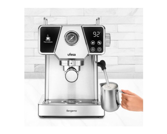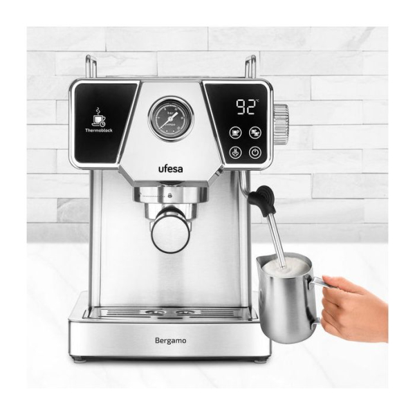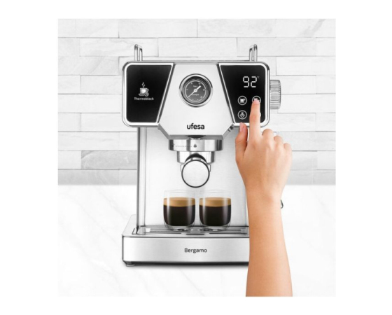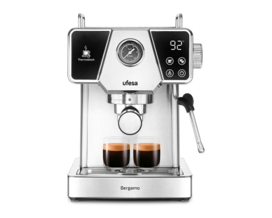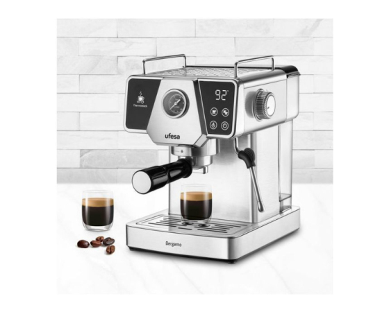 Začnite dan z vrhunskim espressom – Ufesa Bergamo espresso aparat je zasnovan za ljubitelje dobre kave. Z močjo 20 barov pritiska omogoča pripravo bogate, kremaste kave kot iz kavarne. Grelna plošča na vrhu aparata ohranja skodelice tople, kar še dodatno izboljša okus kave.
