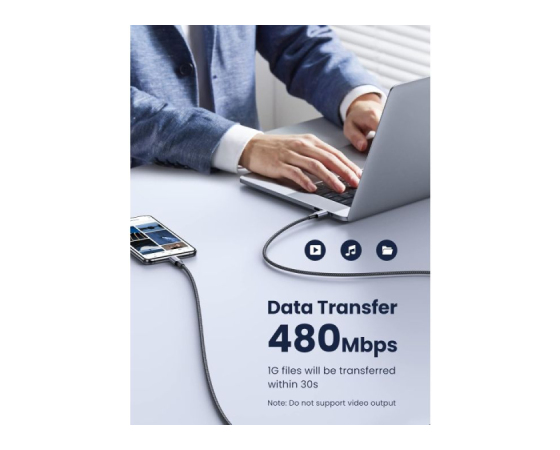 Kot podatkovni kabel USB C je njegova hitrost prenosa podatkov do 480 Mb/s med telefonom in prenosnikom. Opomba: ta kabel USB 2.0 ne podpira video izhoda.