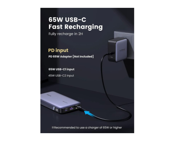 napolnite v 2 urah s 65 W adapterjem, nič več čakanja čez noč.