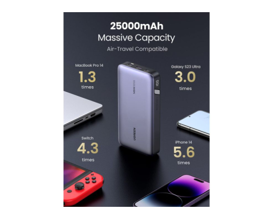 večkrat napolni MacBook Pro 14", Galaxy S23 Ultra in iPhone 14. Idealno za potovanja in naporne dni.