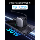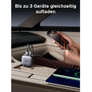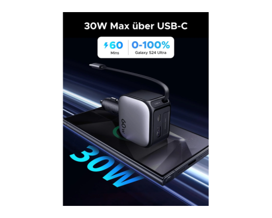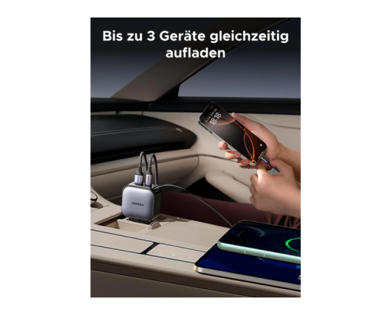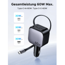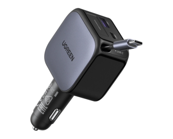 Model UGREEN 55212 prinaša visoko zmogljivost in praktičnost za uporabo v avtomobilu. Vgrajen izvlečni USB-C kabel dolžine do približno 0,7 m omogoča fleksibilno polnjenje mobilnih naprav na sovoznikovem ali zadnjem sedežu, brez zmešnjave kablov. Poleg njega polnilnik ponuja 1 × USB-C priključek in 1 × USB-A priključek, s katerima lahko hkrati polnite do tri naprave. Skupna izhodna moč znaša do 60 W, posamezno vrata pa omogočajo do 30 W izhodne moči. Podpora za številne protokole hitrega polnjenja (PD 3.0, PPS, QC 3.0/2.0, SCP, FCP, AFC in Apple 5 V/2.4 A) pomeni široko združljivost s telefoni, tablicami in drugimi napravami. Ohišje iz ognjeodpornega materiala in zaščitni sistemi pred prekomernim tokom, napetostjo in kratkim stikom zagotavljajo varno uporabo med vožnjo.