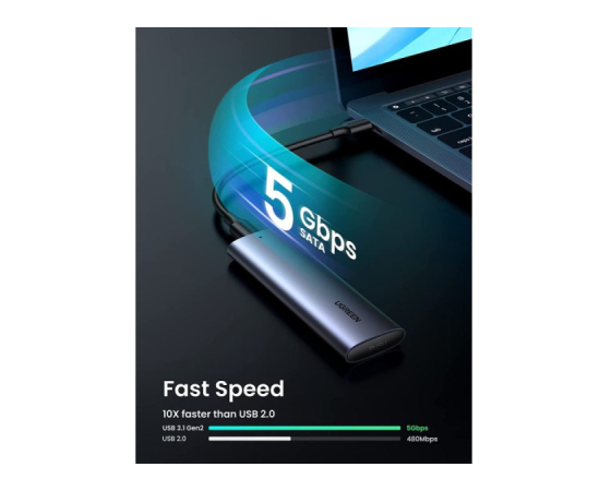 izdelano iz vrhunske aluminijeve zlitine, je ohišje UGREEN boljše pri odvajanju toplote, za delo pri visoki hitrosti ni potreben hladilni ventilator.