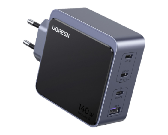 UGREEN 45575 je zmogljiv 140 W GaN polnilnik s štirimi izhodi, zasnovan za profesionalno uporabo in sodobna delovna okolja. Omogoča hkratno polnjenje prenosnikov, tablic in drugih USB-naprav z visoko skupno izhodno močjo ter učinkovito razporeditvijo energije med priključki. Zaradi GaN tehnologije polnilnik ohranja kompaktno obliko, visoko učinkovitost in stabilno delovanje tudi pri večjih obremenitvah.