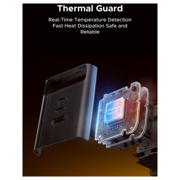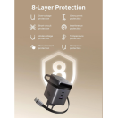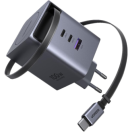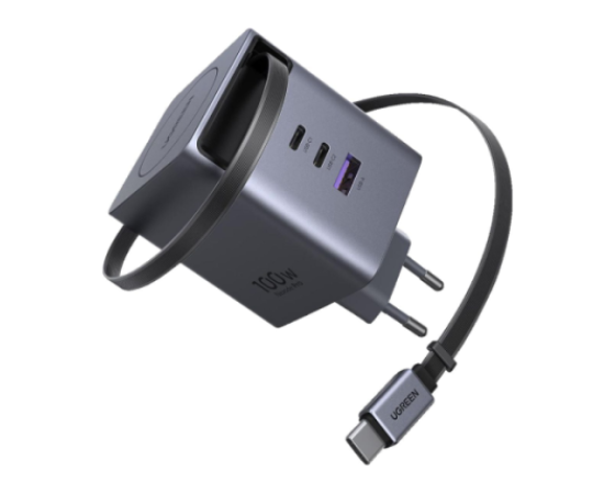 Polnilnik vključuje vgrajen izvlečni USB-C kabel dolžine 0,75 m, ki omogoča praktično uporabo brez dodatnih kablov. Poleg kabla ima še tri dodatne priključke (USB-C1, USB-C2 in USB-A), kar omogoča hkratno polnjenje več naprav.