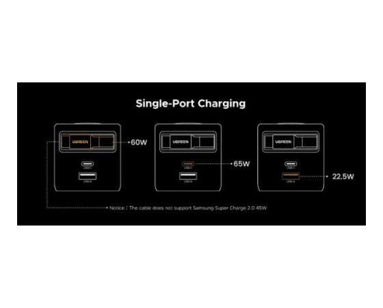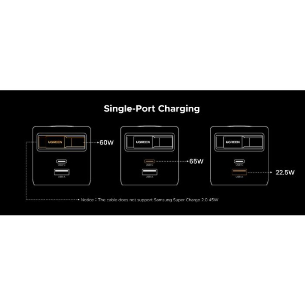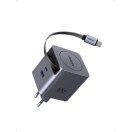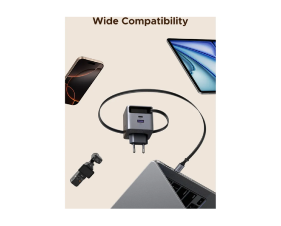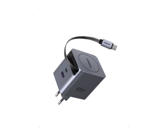 65W GaN hitri polnilec z izvlečnim kablom je polnilec podjetja UGREEN, ki ponuja učinkovito in prilagodljivo polnjenje za več naprav. Z vgrajenim izvlečnim kablom dolžine 0,7 metra lahko uporabnik nastavi dolžino v do osem različnih stopenj. Polnilec je prestal več kot 25.000 testov izvleka in več kot 10.000 testov upogibanja, kar zagotavlja vzdržljivost in enostavno uporabo.