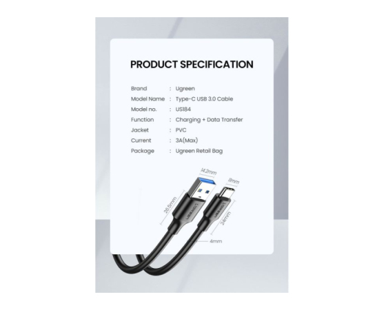 Ugreen USB 3.0 na USB-C kabel je visoko kvaliteten in zmogljiv kabel za vse vaše naprave z USB-C konektorjem.