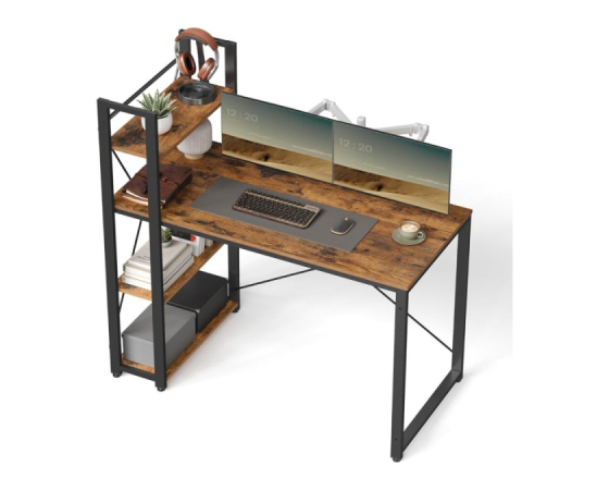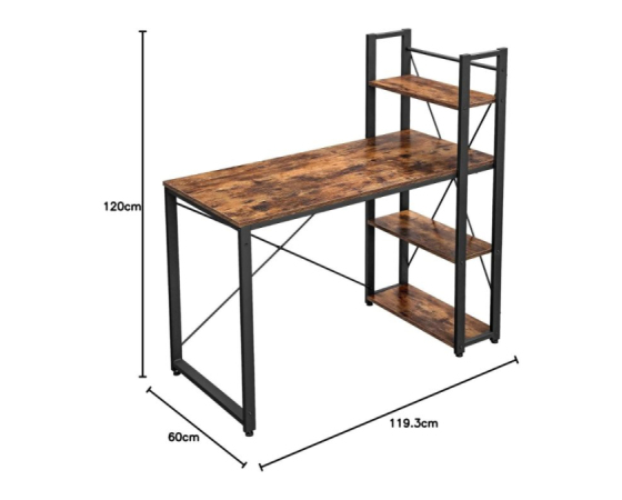 Poiščite popolno ravnovesje med funkcionalnostjo in slogom z VASAGLE pisalno mizo v industrijskem videzu. Površina v toplem rustikalnem lesnem tonu in črn kovinski okvir ustvarjata močan, a estetski kontrast, ki se odlično poda v domačo pisarno, študentsko sobo ali delovni kotiček. Prostorna delovna površina nudi dovolj prostora za računalnik, zvezke in dodatke, medtem ko stabilno jekleno ogrodje s prečnimi ojačitvami zagotavlja trdnost in vzdržljivost. Zahvaljujoč preprosti sestavi in nastavljivim nogicam za neenakomerna tla je miza hitro pripravljena na uporabo.