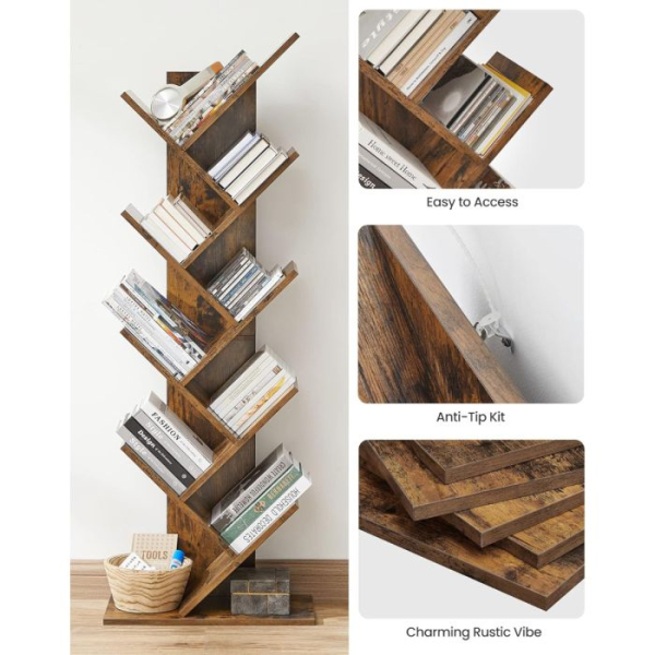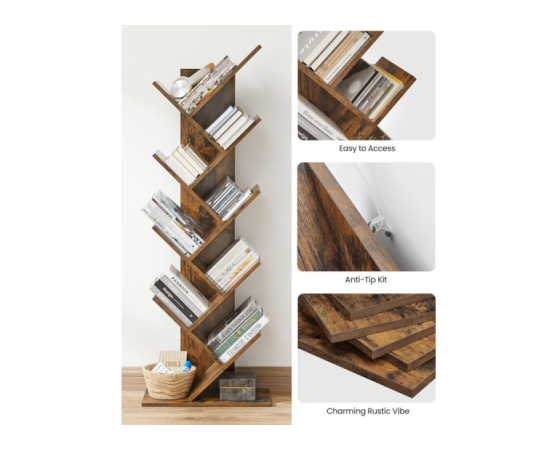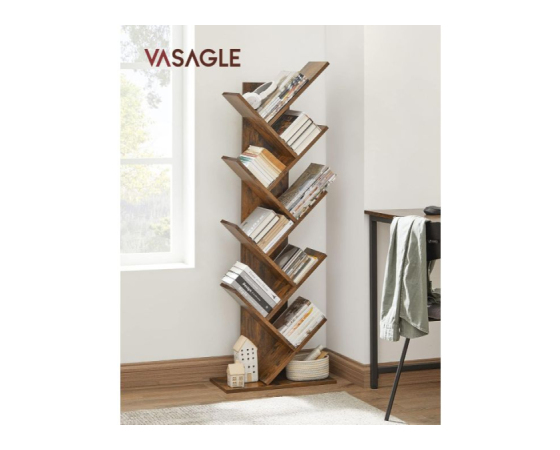 Poiščite popolno kombinacijo funkcionalnosti in sloga z VASAGLE prostostoječim knjižnim regalom. Zasnova v industrijskem slogu združuje rustikalno rjave police z mat črnim kovinskim okvirjem, kar ustvari topel, a moderen kontrast. Pet prostornih polic nudi dovolj prostora za knjige, škatle, dekoracije, rastline ali pisarniške pripomočke. Kovinski okvir v obliki črke X na zadnji strani doda stabilnost, nastavljive nogice pa poskrbijo za popolno postavitev tudi na nekoliko neravnih tleh. Regal je idealen za dnevne sobe, domače pisarne, hodnike ali spalnice.