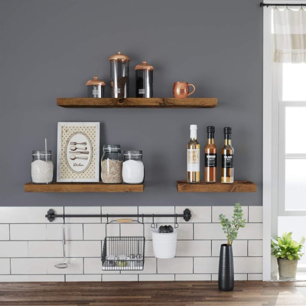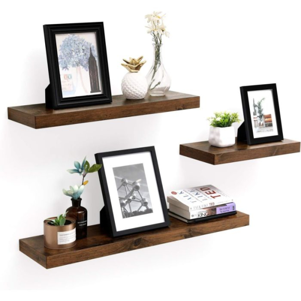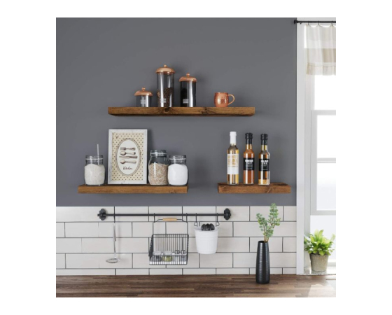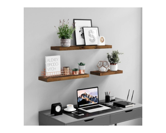 Dodajte pridih topline in urejenosti svojemu domu s kompletom dveh lebdečih polic VASAGLE. Vintage rjava barva in izrazita tekstura lesa omogočata enostavno vključitev v dnevno sobo, pisarno, kuhinjo ali hodnik.