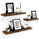 Elegantni stenski polici v vintage rjavi barvi s stabilno konstrukcijo. Vsaka polica meri 20 × 80 × 3,8 cm in ponuja praktičen prostor za shranjevanje knjig, slik ali dekoracije v katerem koli prostoru.