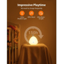 Svetloba + glasba se lahko neprekinjeno predvaja do 20 ur, največja življenjska doba baterije čiste glasbe pa je več kot 40 ur.