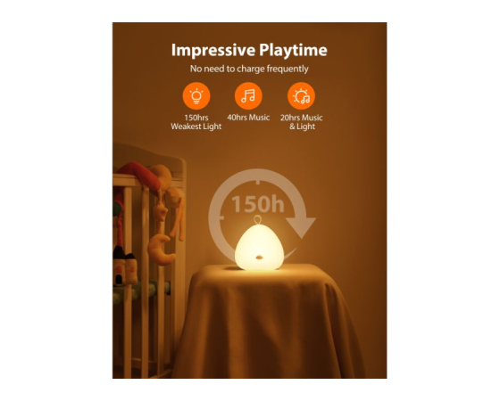 Svetloba + glasba se lahko neprekinjeno predvaja do 20 ur, največja življenjska doba baterije čiste glasbe pa je več kot 40 ur.
