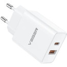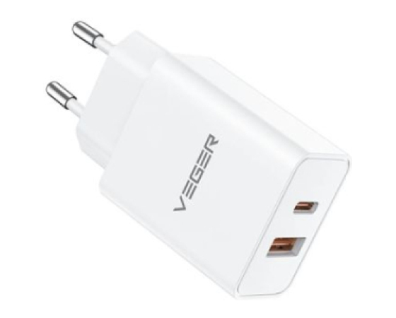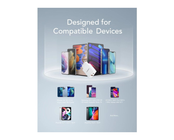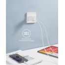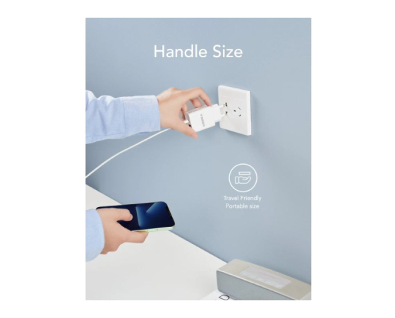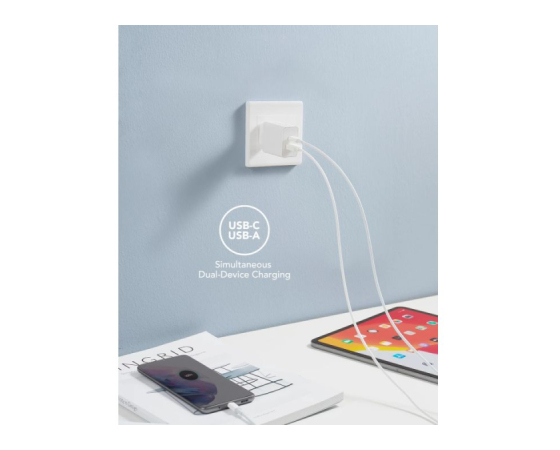 Zasnova z dvojnimi prikljčki (1 vrata USB-C Power Delivery in 1 vrata USB-A) vam omogoča hitro polnjenje telefona in tablice hkrati, kadarkoli in kjer koli.