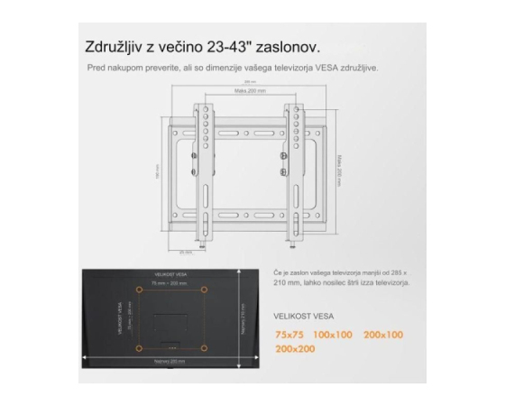 Pomembno opozorilo: Pred nakupom preverite združljivost z VESA standardi vašega televizorja.