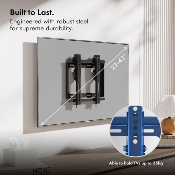 Povečajte svoje doživetje gledanja televizije z našim sodobnim in vsestranskim nosilcem za televizijo s funkcijo nagibanja in obračanja, zasnovanim za televizorje velikosti od 23 do 43 palcev. Ta eleganten nosilec ne zagotavlja le estetsko prijetnega videza, temveč tudi prilagodljivost pri nastavljanju televizorja za popolni gledalni kot.