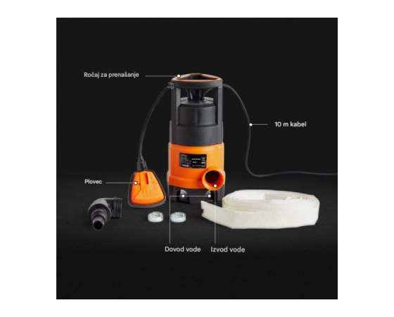 8 m dolga cev in 10 m dolg mehansko zatesnjen napajalni kabel omogočata enostaven dostop do vode tudi takrat, ko je električni vir bolj oddaljen.