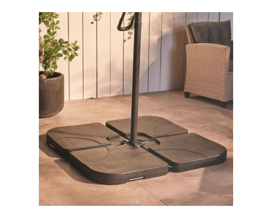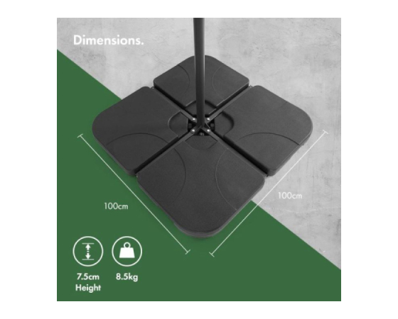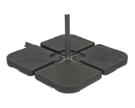 Vsak del podlage je opremljen z ročajem za prenašanje, kar omogoča preprosto premikanje in prilagajanje položaja vašega senčnika. Postavitev senčnika ali premik v senco še nikoli ni bil tako enostaven! Pozabite na težavno dvigovanje in se prepustite brezskrbnemu uživanju na vrtu.