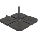 Za vrhunsko stabilnost poskrbi komplet štirih uteži, ki zagotavljajo enakomerno porazdelitev teže. Dodatni nakupi niso potrebni – štiridelni set že vsebuje vse, kar potrebujete za trdno oporo vašega senčnika. Tako se lahko brezskrbno sprostite v senci.