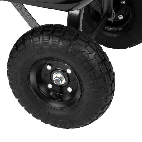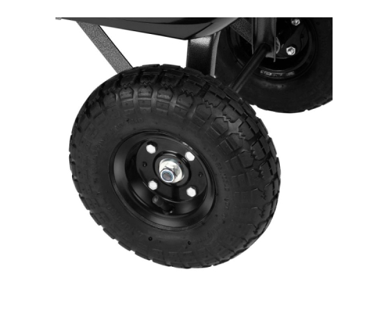Štiri velike pnevmatike premera 10" enakomerno porazdelijo težo tovora ter tako omogočajo lahkotno in enostavno manevriranje tudi na grobi, neenakomerni podlagi.