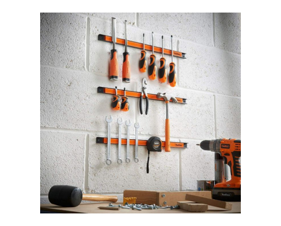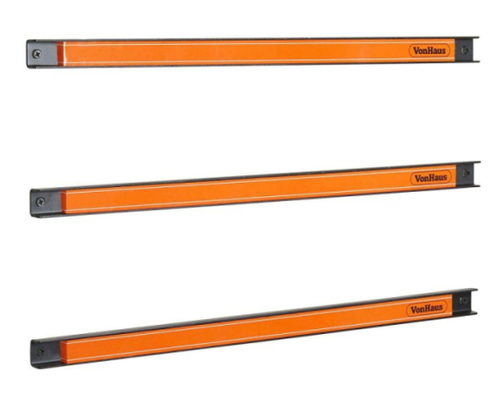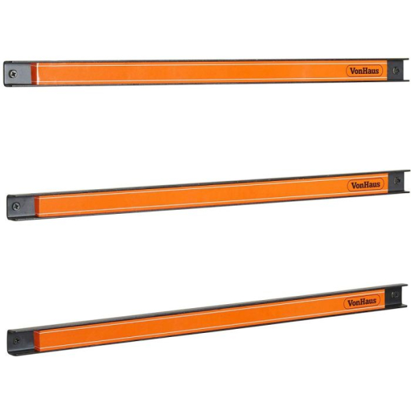 VonHaus magnetni nosilec za orodje vsebuje komplet treh robustnih magnetnih trakov, ki se s priloženimi vijaki zlahka pritrdijo na steno in nudijo priročno odlagališče za orodje kot so izvijači, ključi in drugo. Vsak trak meri 60cm