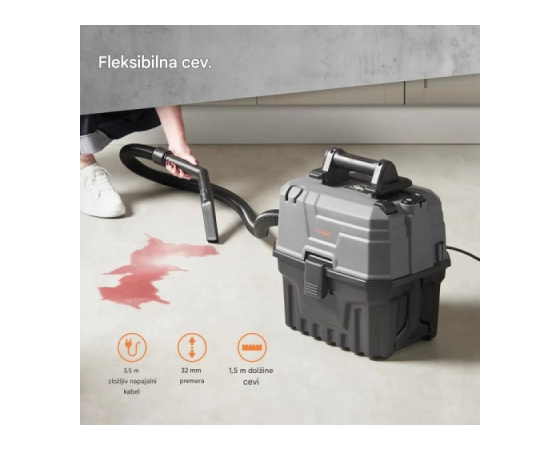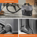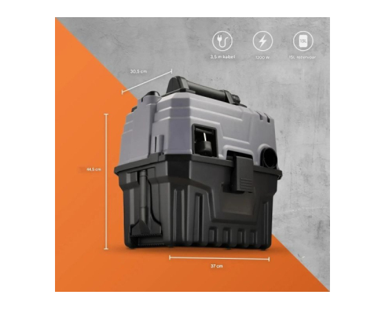 Rešite se razlitih tekočin, gradbenega prahu, listja in še več z večnamenskim VonHaus mokro-suhim sesalnikom. Z zmogljivim 1200 W motorjem in pretokom zraka 32 litrov na sekundo z lahkoto odstranite tekočine, prah, žagovino ali nesnago iz vozil, garaže ali delavnice.