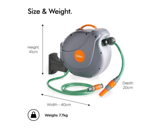 Posebno sivo in oranžno ohišje z izjemno dolgo 20m zeleno cevjo - omogoča, da dosežete vsa področja vašega vrta