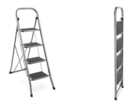 Trpežna jeklena lestev s 4 stopnicami.
