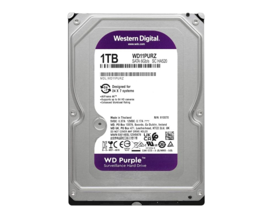 WD Purple WD11PURZ je del profesionalne serije trdih diskov Western Digital, namenjene video nadzoru. Disk omogoča zanesljivo 24/7 delovanje in je optimiziran za video snemanje iz do 64 HD kamer. Zahvaljujoč ekskluzivni tehnologiji AllFrame™, ki zmanjšuje izgubo videopodatkov in izboljšuje predvajanje, je ta disk idealna izbira za nadzorne sisteme. S kapaciteto 1TB in vmesnikom SATA 6Gb/s ponuja zanesljivo shranjevanje in dolgo življenjsko dobo tudi v zahtevnih okoljih.